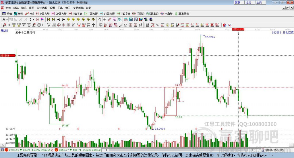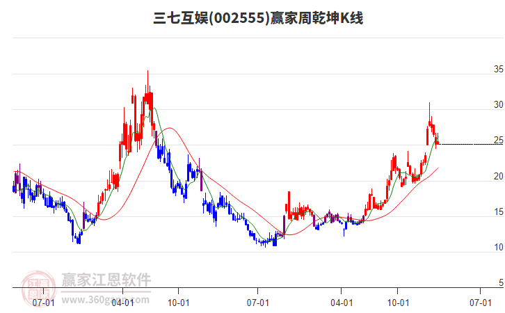 002555三七互娛在高點31.01后,回調(diào)了5.72元,江恩周天時間循環(huán)線顯示近期時間窗2月24日