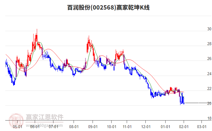 今日百潤股份(002568)收盤價為20.43,小幅下跌3.59%,近期高點是22.5元,時間是2026年1月12日,到現(xiàn)在已經下跌11天,共跌去了2.07元,跌幅為10.13%。