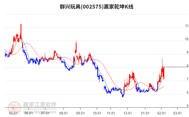 002575群興玩具自1月26日漲停,快速拉升5個(gè)交易日后,今日再次漲停,近期低點(diǎn)1月21日上漲至2月2日,共8日漲幅28.57%。近一年以來已漲停了11次,中間出現(xiàn)連板時(shí)間段有1次,最近一次連板發(fā)生
