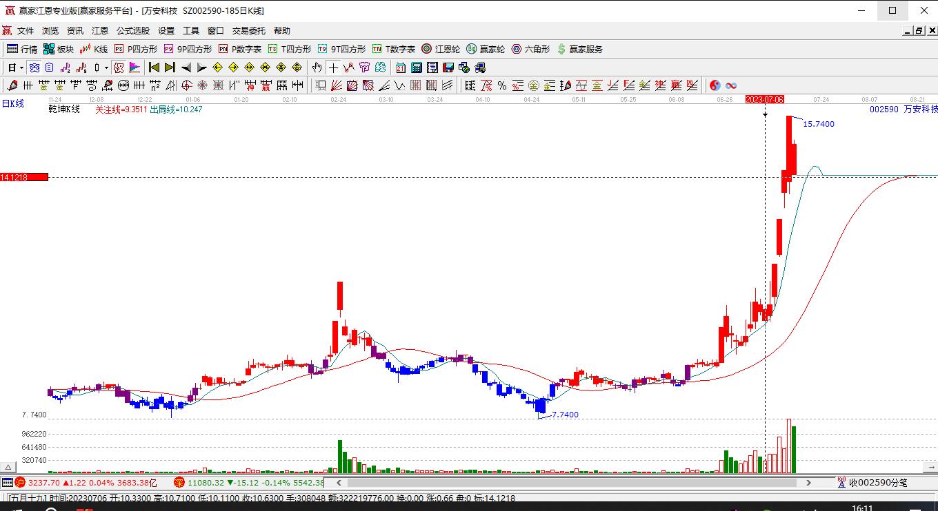 當天002590萬安科技漲幅4.12% 處入強勢通道區(qū)域