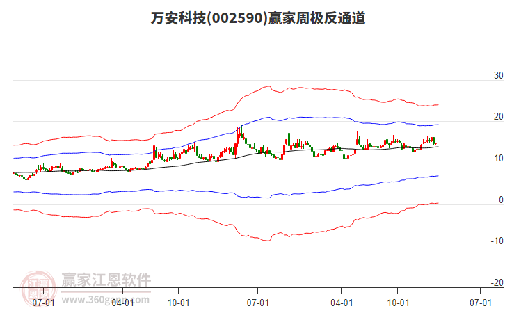 當天002590萬安科技最高價15.75上穿了贏家極反通道工具藍色外軌線,受到藍色外軌線強力壓制,最終收盤停留在在藍色外軌線與生命線上方的強勢通道區(qū)域。002590萬安科技近10個交易日漲幅11.6%