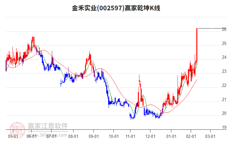金禾實(shí)業(yè)002597最高價(jià)上穿藍(lán)色外軌線 小幅上漲3.88%