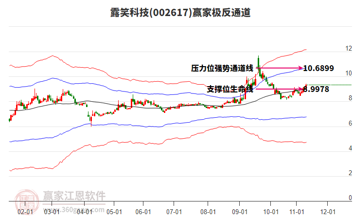 依據(jù)贏家江恩系統(tǒng)趨勢工具極反通道分析判斷露笑科技002617運行在生命線以上強勢區(qū)域,根據(jù)規(guī)則該股可短線、波段結(jié)合操作;結(jié)合物極必反的原理通過分鐘圖做盤中差價,應(yīng)用口訣是:生命線上強勢走,生命線下難抬頭;紅黃兩條外軌線,壓力支撐顯勢頭。