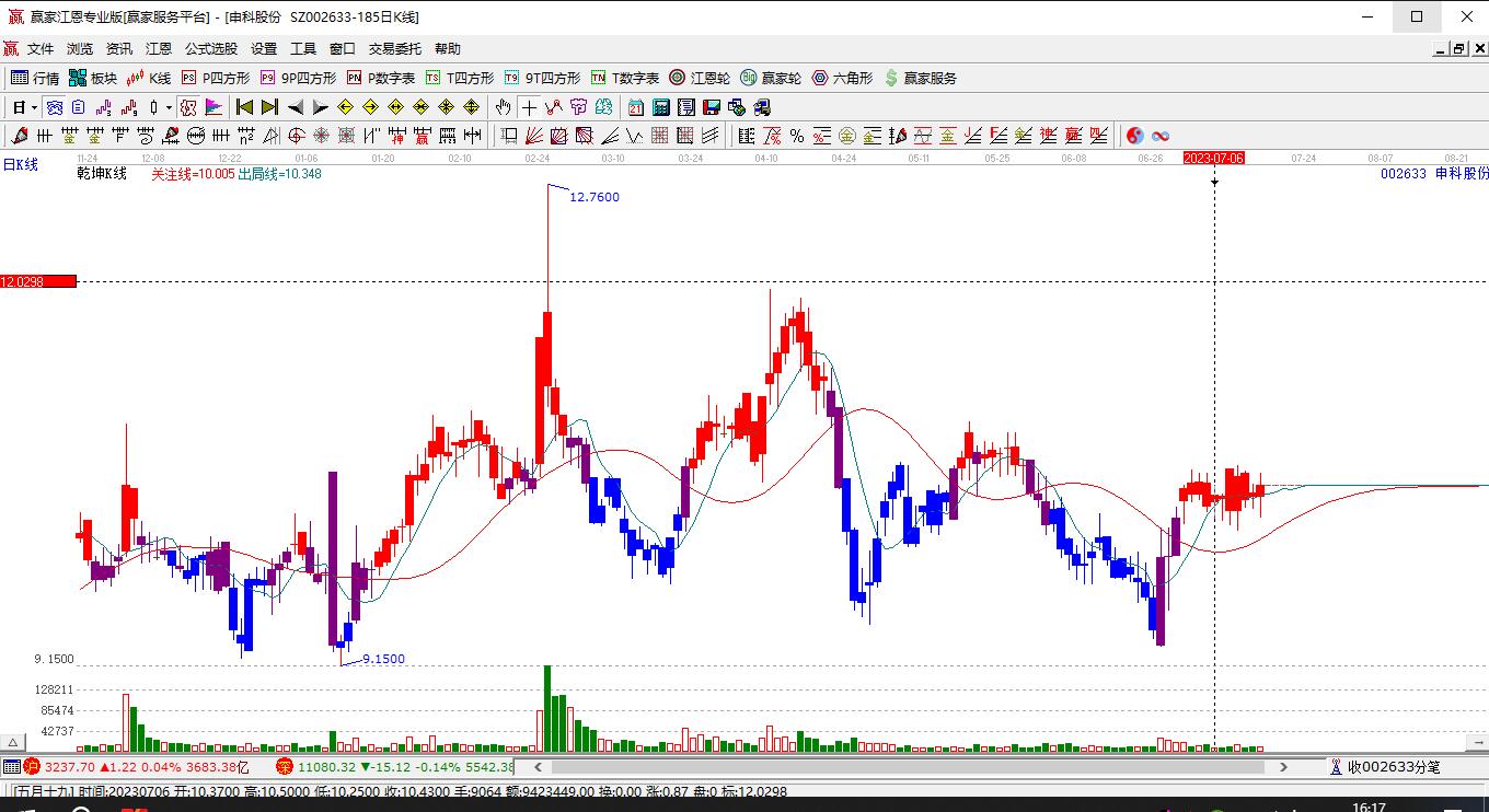 申科股份002633低開(kāi)收漲停,突破贏家十二宮上漲結(jié)構(gòu)警戒線
