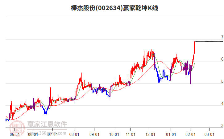 今天棒杰股份(002634)漲停,贏家江恩時間模型顯示近期時間窗2月10日