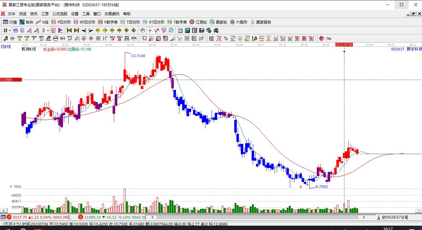 當天贊宇科技002637以光腳大陽線收盤,今天是關(guān)鍵時間窗口