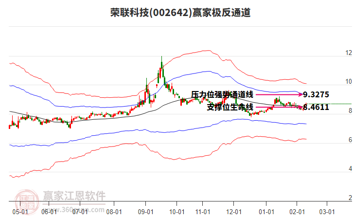 依據(jù)贏家江恩系統(tǒng)趨勢(shì)工具極反通道分析判斷榮聯(lián)科技002642運(yùn)行在生命線以上強(qiáng)勢(shì)區(qū)域,根據(jù)規(guī)則該股可短線、波段結(jié)合操作;結(jié)合物極必反的原理通過(guò)分鐘圖做盤(pán)中差價(jià),應(yīng)用口訣是:生命線上強(qiáng)勢(shì)走,生命線下難抬頭;紅黃兩條外軌線,壓力支撐顯勢(shì)頭。