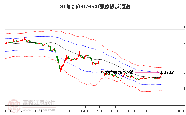 ST加加目前漲停,走出獨(dú)立行情。ST加加截止目前突破極反通道強(qiáng)勢通道線,根據(jù)贏家江恩極反通道趨勢工具展示,上方壓力位5.9014,下方支撐位5.3764。ST加加今日跳空高開,截止目前K線漲停,上漲能