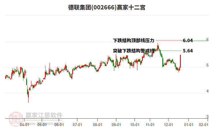 002666德聯(lián)集團(tuán)根據(jù)贏家江恩極反通道趨勢(shì)工具展示,上方壓力位6.0905,下方支撐位5.3859。002666德聯(lián)集團(tuán)處于贏家江恩多頭次主線形態(tài),12月8日發(fā)出江恩筑底信號(hào)后,經(jīng)過(guò)37日,今日形成