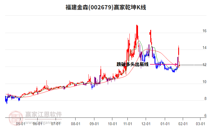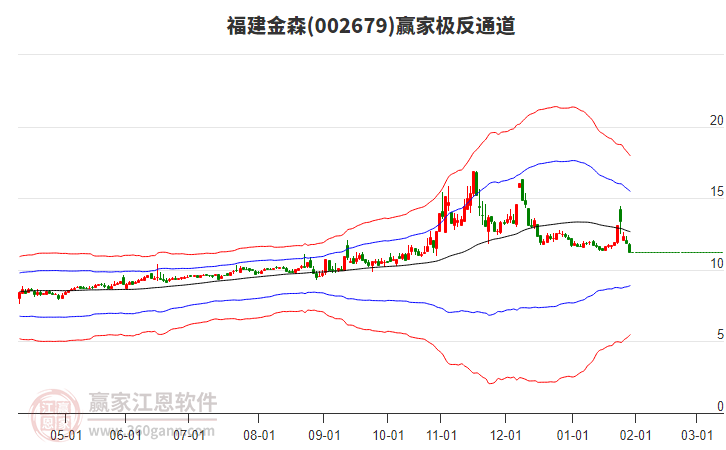 福建金森處于贏家江恩多頭次主線形態(tài),從1月26日形成頂分型后持續(xù)下跌,重心下移,今日跌破前低形成短期初次筑頂信號,短期多頭趨勢已被破壞,中長期目前都處于回調(diào)中。福建金森根據(jù)贏家江恩極反通道趨勢工具展示