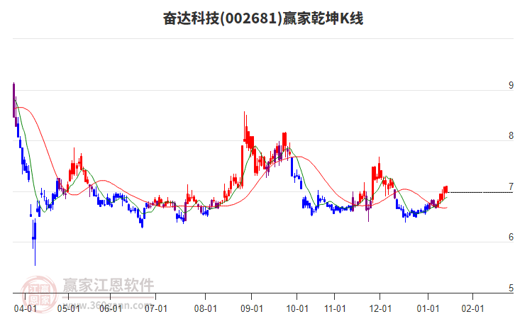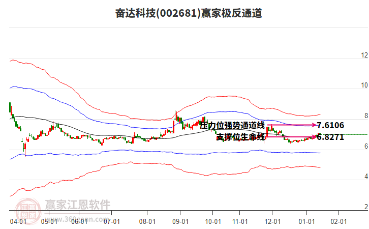 依據(jù)贏家江恩系統(tǒng)趨勢工具極反通道分析判斷奮達(dá)科技002681運(yùn)行在生命線以上強(qiáng)勢區(qū)域,根據(jù)規(guī)則該股可短線、波段結(jié)合操作;結(jié)合物極必反的原理通過分鐘圖做盤中差價,應(yīng)用口訣是:生命線上強(qiáng)勢走,生命線下難抬頭;紅黃兩條外軌線,壓力支撐顯勢頭。