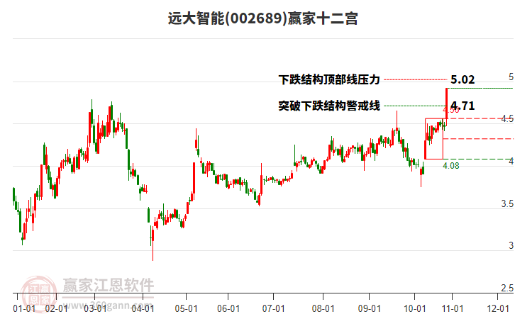 遠(yuǎn)大智能下跌途中收上影十字星,今日收盤價(jià)4.11