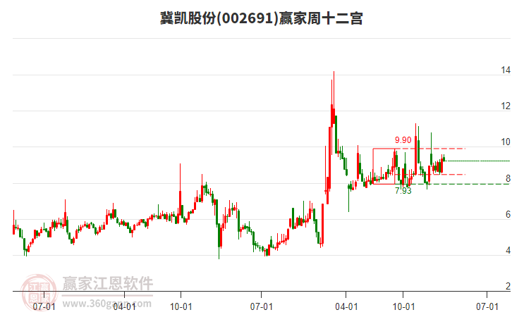 002691冀凱股份處于贏家江恩空頭主線形態(tài),今日雖重心上移,但短期空頭趨勢未改變,長期發(fā)出江恩筑頂信號(hào),注意風(fēng)險(xiǎn)規(guī)避。002691冀凱股份根據(jù)贏家江恩極反通道趨勢工具展示,上方壓力位9.9555,下