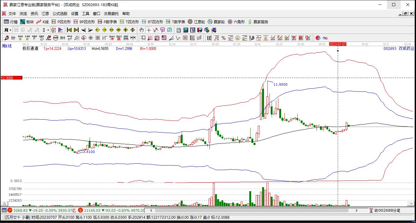 002693*ST雙成目前漲停,所屬板塊CXO、肝炎、仿制藥、輔助生殖、CRO、海南自貿(mào)區(qū)、醫(yī)藥短期底分型后持續(xù)上攻。002693*ST雙成截止目前突破極反通道生命線,根據(jù)贏家江恩極反通道趨勢(shì)工具展示