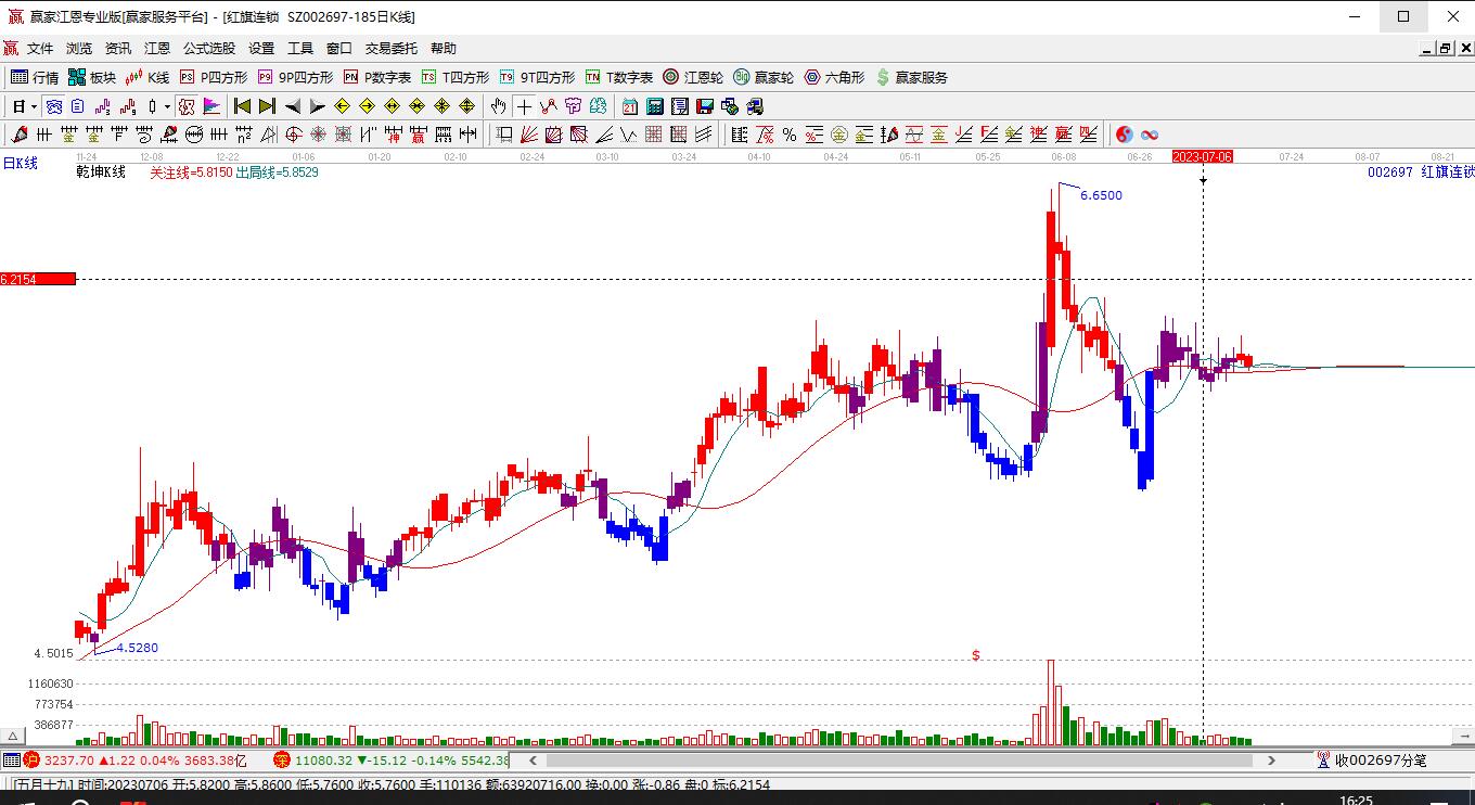 002697紅旗連鎖昨日收盤價(jià)為6.23元,今天收盤價(jià)為6.85元,最近強(qiáng)勢(shì)漲停,連續(xù)漲停期間,漲幅達(dá)20.02%
