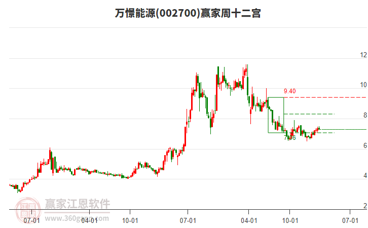 002700萬(wàn)憬能源處于贏家江恩多頭中期回調(diào)形態(tài),11月18日發(fā)出江恩筑頂信號(hào)后,經(jīng)過(guò)48日,今日再次發(fā)出江恩底分型并發(fā)出江恩筑底信號(hào),中期多頭反彈趨勢(shì)延續(xù),但長(zhǎng)期處于回調(diào)中。002700萬(wàn)憬能源根據(jù)