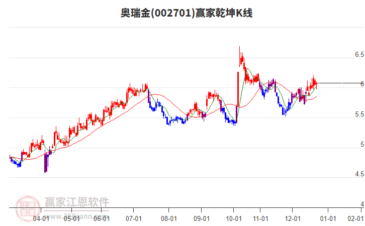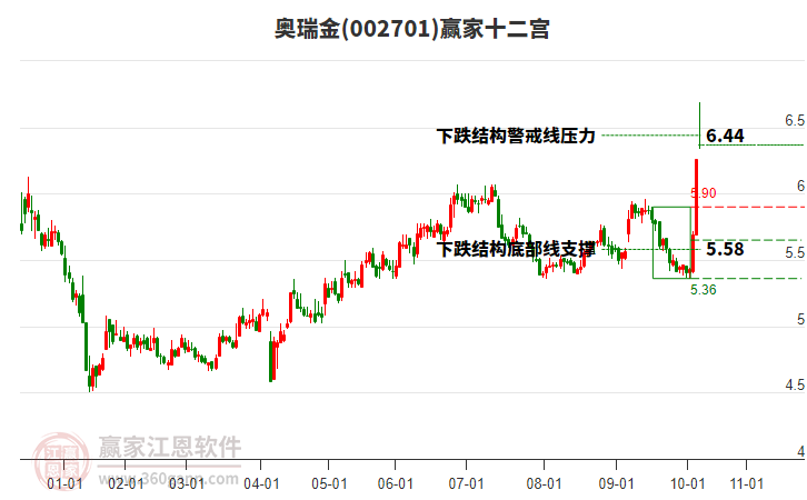 奧瑞金(002701)根據(jù)贏家江恩極反通道趨勢工具展示,上方壓力位6.406,下方支撐位5.8088。奧瑞金(002701)處于贏家江恩多頭次主線形態(tài),10月13日發(fā)出江恩筑底信號后,經(jīng)過18日,今日