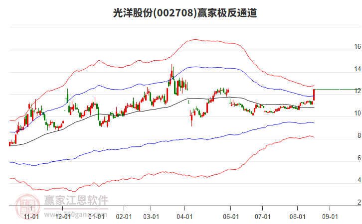 依據(jù)贏家江恩系統(tǒng)趨勢工具極反通道分析判斷光洋股份002708運(yùn)行在生命線以上強(qiáng)勢區(qū)域,根據(jù)規(guī)則該股可短線、波段結(jié)合操作;結(jié)合物極必反的原理通過分鐘圖做盤中差價(jià),應(yīng)用口訣是:生命線上強(qiáng)勢走,生命線下難抬頭;紅黃兩條外軌線,壓力支撐顯勢頭。
