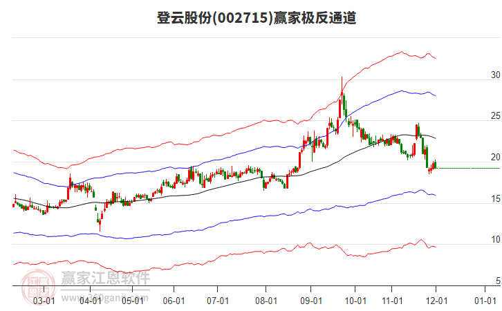 依據(jù)贏家江恩系統(tǒng)趨勢工具極反通道分析判斷登云股份002715運行在生命線以下弱勢區(qū)域,根據(jù)規(guī)則該股短線輕倉參與,股價跌至弱勢外軌線后波段再結合其它工具信號建倉。應用口訣是:生命線上強勢走,生命線下難抬頭;紅黃兩條外軌線,壓力支撐顯勢頭。