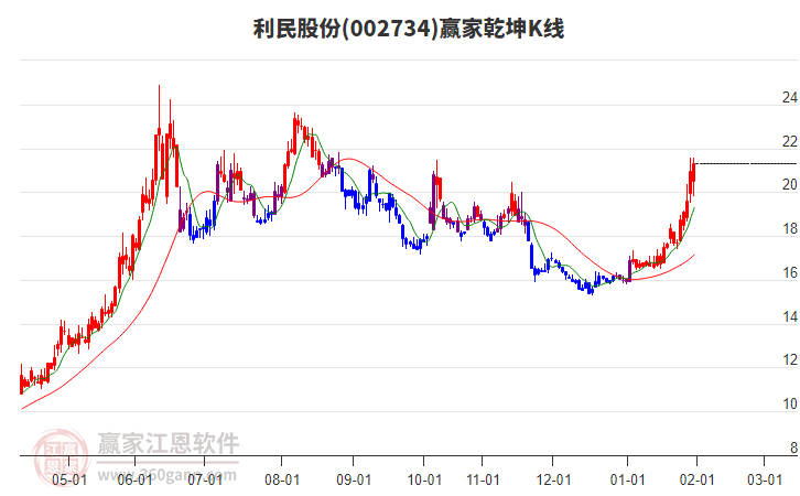 目前002734利民股份以穿頭破腳中陽線收盤,近期時間窗口為:1月30日