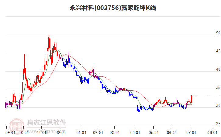 永興材料漲至老子十二宮上漲結(jié)構(gòu)頂部下方區(qū)域內(nèi) 近9個(gè)交易日漲幅23.08%