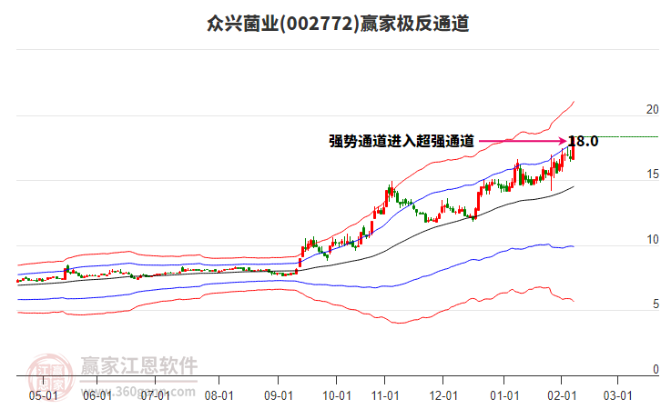 眾興菌業(yè)目前漲停,走出獨立行情。眾興菌業(yè)截止目前突破極反通道強勢通道線,根據(jù)贏家江恩極反通道趨勢工具展示,上方壓力位21.0539,下方支撐位18.0。眾興菌業(yè)今日低開,截止目前強勢漲停,K線為漲停,