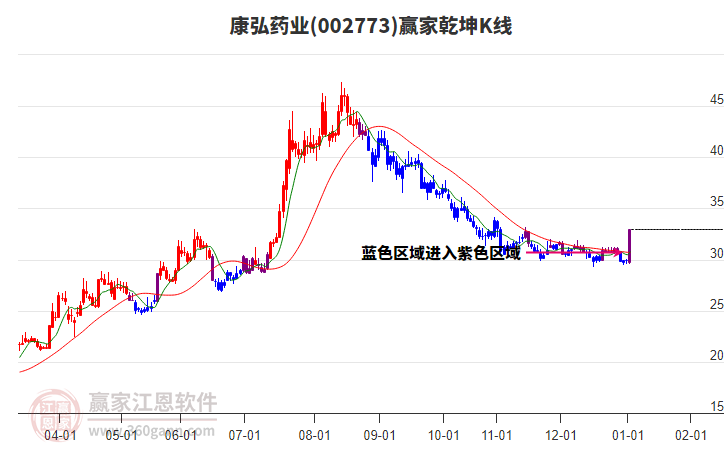 依據(jù)贏家江恩系統(tǒng)趨勢工具極反通道分析判斷康弘藥業(yè)002773運行在生命線以上強勢區(qū)域,根據(jù)規(guī)則該股可短線、波段結(jié)合操作;結(jié)合物極必反的原理通過分鐘圖做盤中差價,應用口訣是:生命線上強勢走,生命線下難抬頭;紅黃兩條外軌線,壓力支撐顯勢頭。