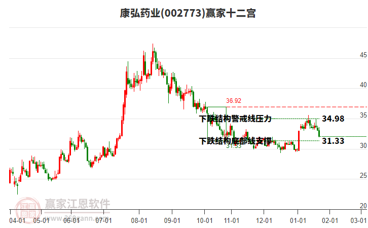 康弘藥業(yè)(002773)根據(jù)贏家江恩極反通道趨勢工具展示,上方壓力位31.5807,下方支撐位26.2605??岛胨帢I(yè)(002773)處于贏家江恩多頭中期回調(diào)形態(tài),從1月13日形成頂分型后持續(xù)下跌,重