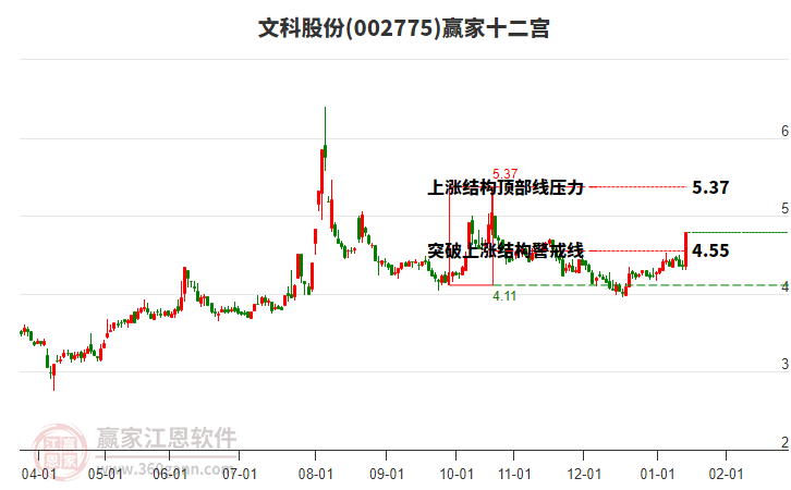 002775文科股份低開收漲停,突破黃金價格回調(diào)支撐位工具壓力位4.65元