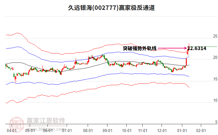 1月12日久遠銀海002777最高價22.2挑戰(zhàn)了贏家極反通道工具上方紅色外軌線,受到上方紅色外軌線強力壓制,最終收盤停留在在上方紅色外軌線與藍色外軌線上方的超強通道區(qū)域。久遠銀海002777近10個