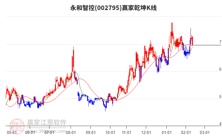002795永和智控根據(jù)贏家江恩極反通道趨勢工具展示,上方壓力位8.2155,下方支撐位6.7507。002795永和智控處于贏家江恩多頭主線形態(tài),從2月3日形成底分型后持續(xù)上攻,今日突破前高形成初次