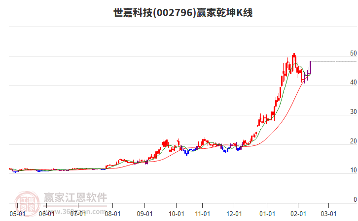 世嘉科技(002796)以48.4元漲停,等距時間線工具顯示近期時間窗2月17日