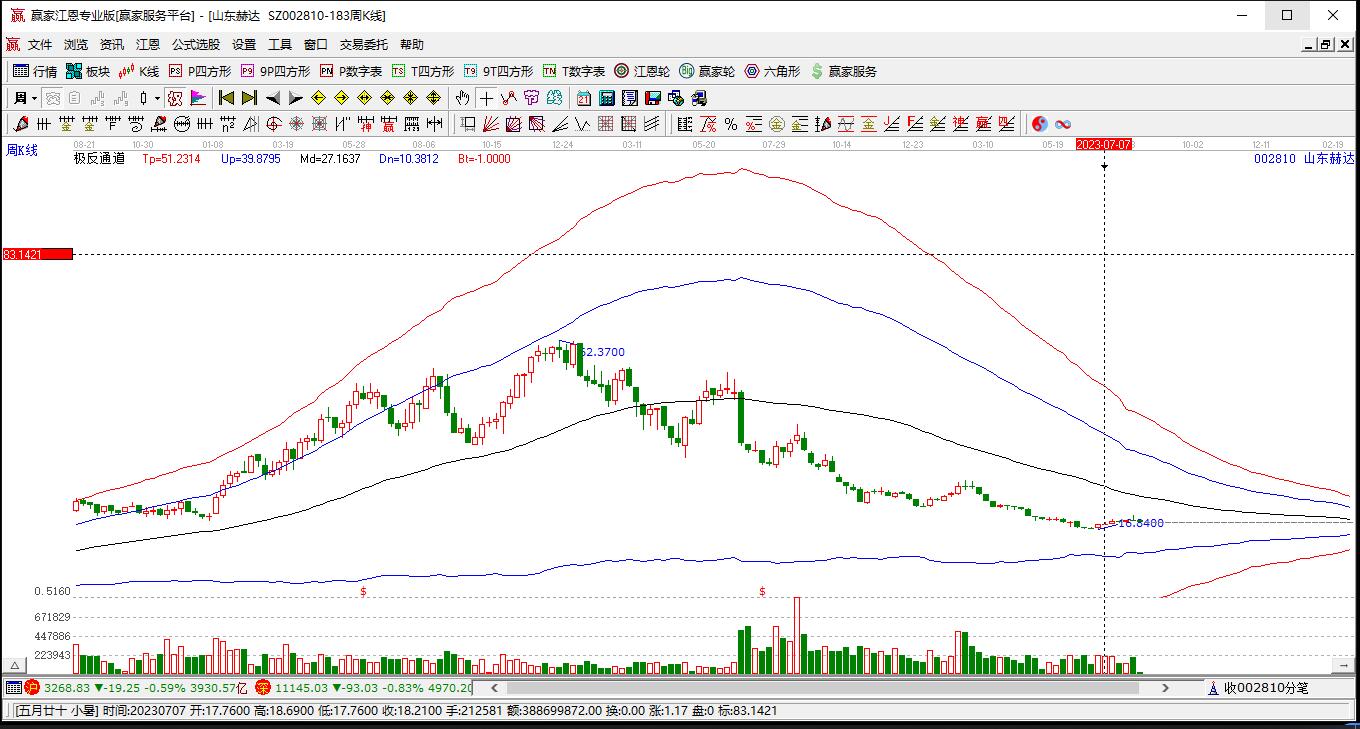 依據(jù)贏家江恩極反通道趨勢工具展示,本周股價處于強勢通道線上方超強通道,近期自2026年1月23日突破強勢通道線,上漲至本周,依據(jù)贏家極反通道規(guī)則:站穩(wěn)一線看高一線,短期關(guān)注此線支撐,如支撐不破,保持在超強通道內(nèi),波段繼續(xù)看多,有望挑戰(zhàn)超強上軌線。若跌破超強通道線17.7959,進入強勢通道,調(diào)整周期繼續(xù)延長。