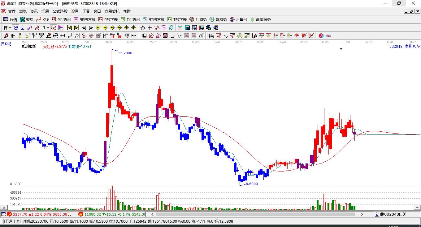 *ST高斯(002848)目前一字板漲停,與所屬行業(yè)概念下股票形成聯(lián)動效應(yīng)。*ST高斯(002848)截止目前突破黃金價格回調(diào)支撐位工具壓力位9.86元,根據(jù)贏家江恩黃金價格回調(diào)支撐位工具展示,上方第