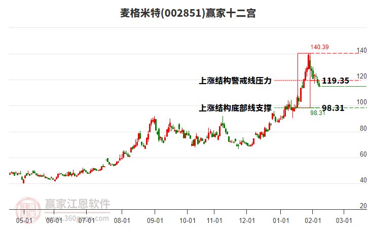 麥格米特低開(kāi)收陽(yáng)線,受贏家十二宮下跌結(jié)構(gòu)頂部線支撐