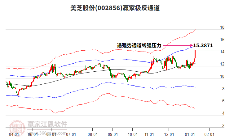 依據(jù)贏家江恩系統(tǒng)趨勢(shì)工具極反通道分析判斷美芝股份002856運(yùn)行在生命線以下弱勢(shì)區(qū)域,根據(jù)規(guī)則該股短線輕倉(cāng)參與,股價(jià)跌至弱勢(shì)外軌線后波段再結(jié)合其它工具信號(hào)建倉(cāng)。應(yīng)用口訣是:生命線上強(qiáng)勢(shì)走,生命線下難抬頭;紅黃兩條外軌線,壓力支撐顯勢(shì)頭。