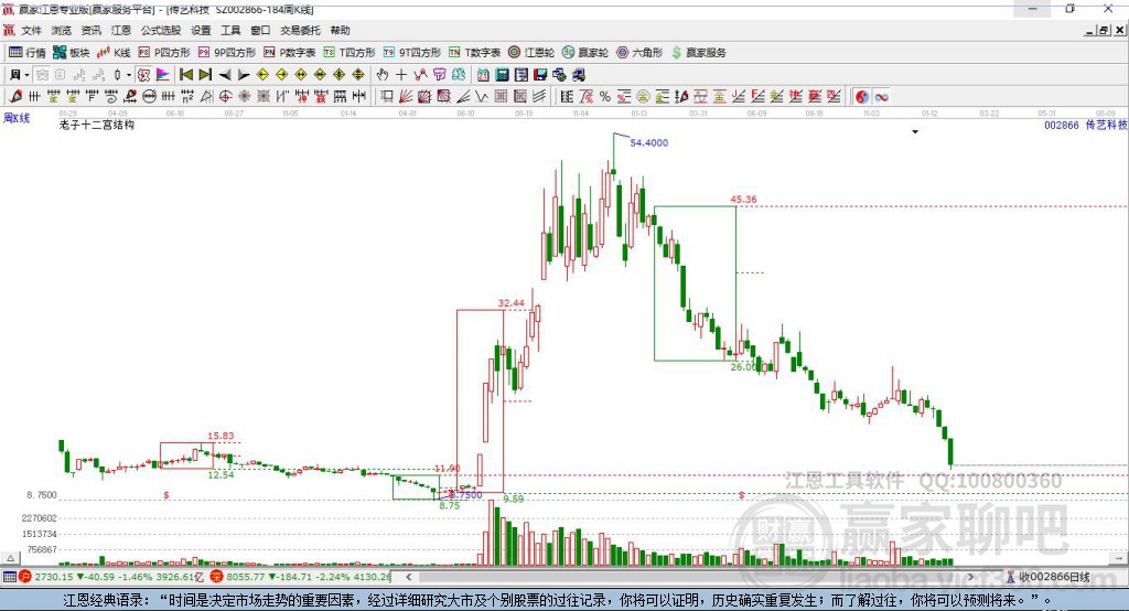 002866傳藝科技處于贏家江恩空頭主線形態(tài),12月3日發(fā)出江恩筑底信號后,經(jīng)過55日,今日形成短期筑頂信號,短期多頭趨勢已被破壞,中期多頭反彈趨勢延續(xù),但長期處于下跌中。002866傳藝科技根據(jù)贏家