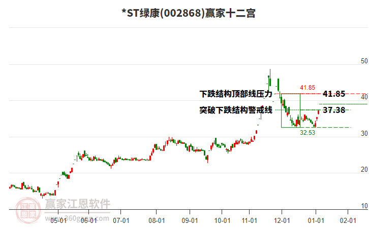 *ST綠康(002868)處于贏家江恩多頭主線形態(tài),從12月31日形成底分型后持續(xù)上攻,今日突破前高形成初次江恩筑底信號,中長期多頭趨勢依舊保持。*ST綠康(002868)根據(jù)贏家江恩極反通道趨勢工具