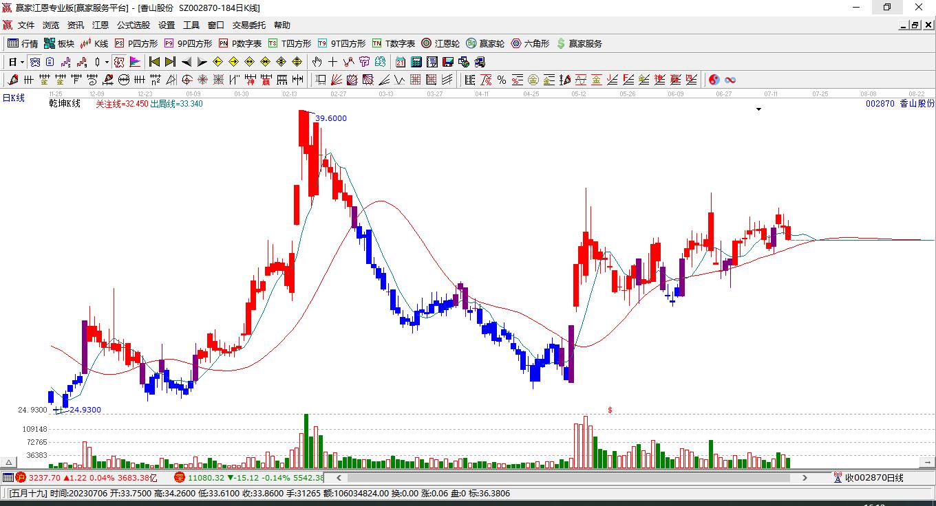 香山股份002870低開收光腳小陽線,處于強(qiáng)勢(shì)通道延續(xù)上漲趨勢(shì)