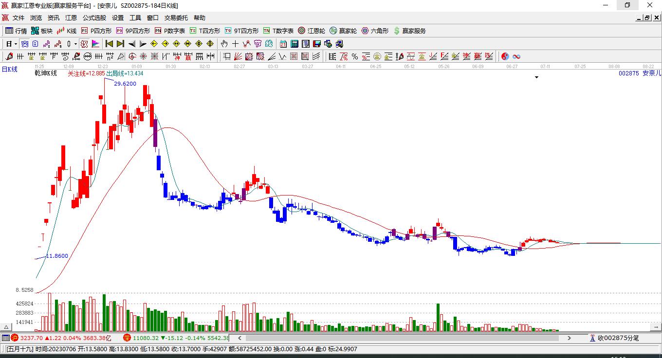 安奈兒處于贏家江恩空頭主線形態(tài),12月26日發(fā)出江恩筑底信號后,經(jīng)過28日,今日形成短期筑頂信號,短期多頭趨勢已被破壞,中期多頭反彈趨勢延續(xù),但長期處于下跌中。安奈兒目前K線為上下影陰線,且當(dāng)前股價低