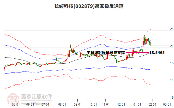 依據(jù)贏家江恩系統(tǒng)趨勢工具極反通道分析判斷長纜科技002879運行在生命線以上強勢區(qū)域,根據(jù)規(guī)則該股可短線、波段結合操作;結合物極必反的原理通過分鐘圖做盤中差價,應用口訣是:生命線上強勢走,生命線下難抬頭;紅黃兩條外軌線,壓力支撐顯勢頭。