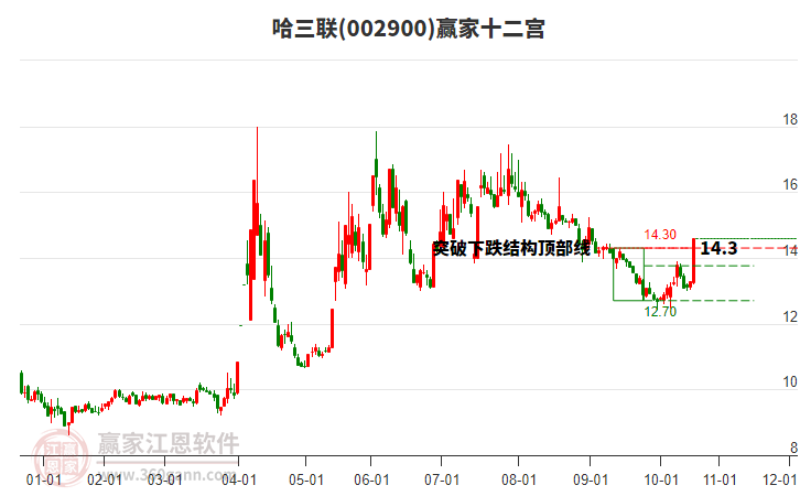 哈三聯(lián)處于贏家江恩多頭主線形態(tài),從12月30日形成底分型后持續(xù)上攻,今日突破前高形成初次江恩筑底信號,中長期多頭趨勢依舊保持。哈三聯(lián)根據(jù)贏家江恩極反通道趨勢工具展示,上方壓力位13.6864,下方支撐