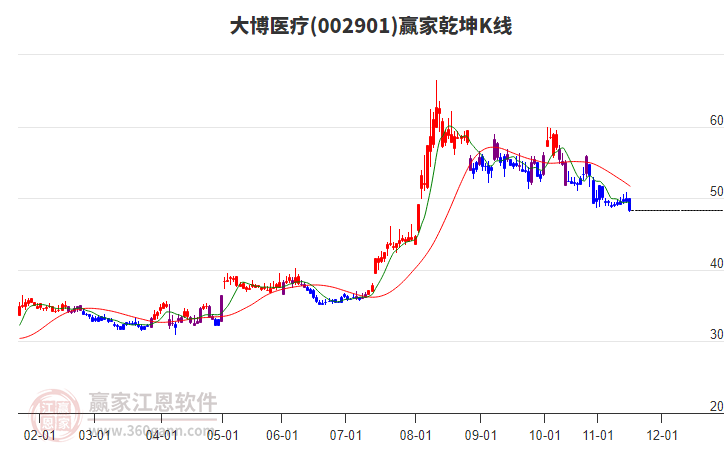 002901大博醫(yī)療在高點56.0后,回調(diào)了7.6元 醫(yī)療器械概念今日跌幅1.47%