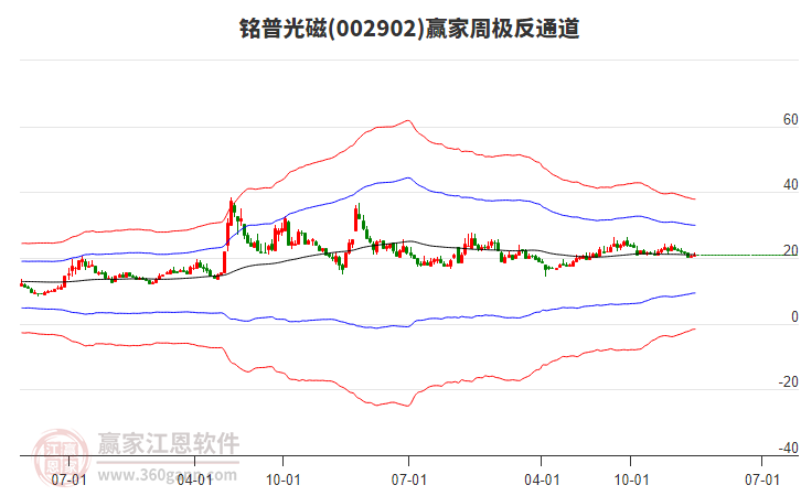 當天銘普光磁最高價22.96上穿了贏家極反通道工具生命線,受到生命線強力壓制,最終收盤停留在在生命線與藍色下軌線上方的弱勢通道區(qū)域。銘普光磁近10個交易日漲幅3.87%。