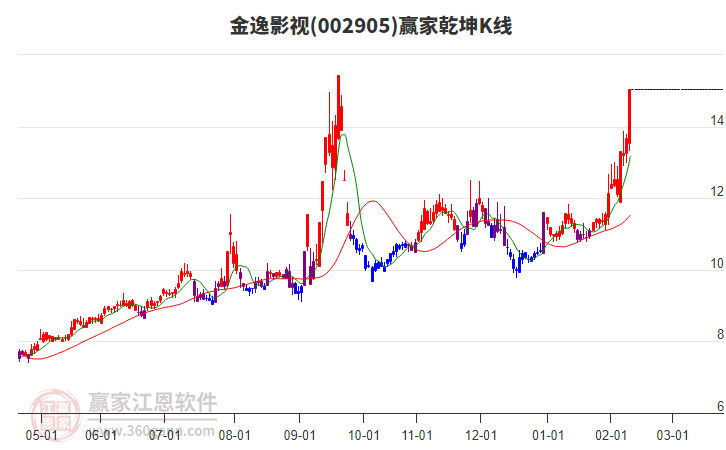 金逸影視(002905)低開收漲停,受極反通道強勢外軌線壓制