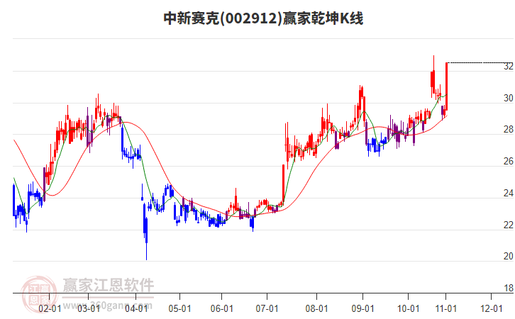 周三002912中新賽克挑戰(zhàn)生命線 以下影小陽線收盤