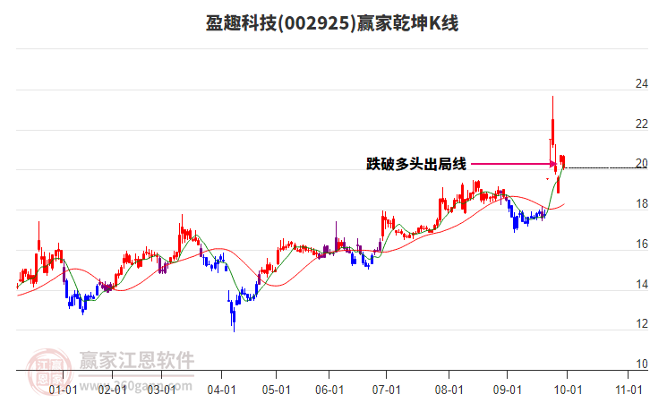 盈趣科技處于贏家江恩多頭次主線形態(tài),12月25日發(fā)出江恩筑底信號后,經(jīng)過34日,今日形成短期筑頂信號,短期多頭趨勢已被破壞,中長期多頭趨勢依舊保持。盈趣科技今日低開下跌,截止目前K線為光頭小陰線,呈下