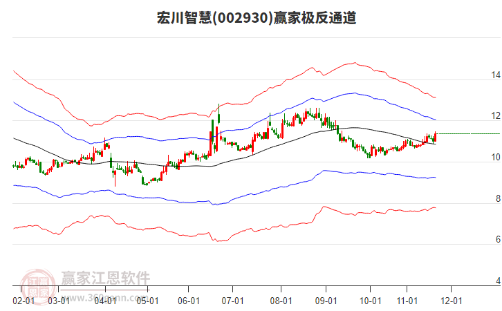 周二宏川智慧最高價(jià)12.32挑戰(zhàn)了贏家極反通道工具藍(lán)色外軌線,受到藍(lán)色外軌線強(qiáng)力壓制,最終收盤(pán)停留在在藍(lán)色外軌線與生命線上方的強(qiáng)勢(shì)通道區(qū)域。宏川智慧近10個(gè)交易日漲幅6.59%。