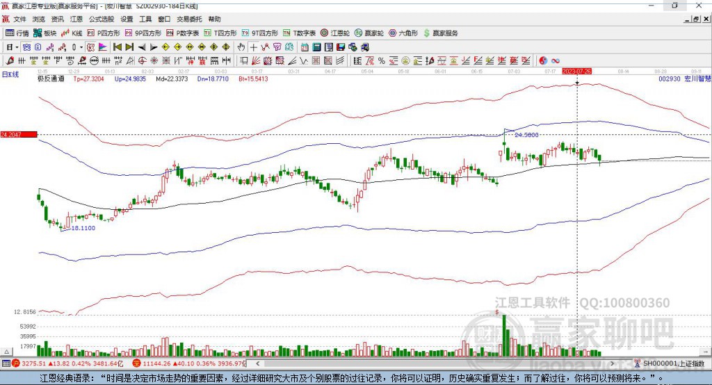 宏川智慧上漲遇阻 受藍(lán)色外軌線(xiàn)壓制 以中陽(yáng)線(xiàn)收盤(pán)