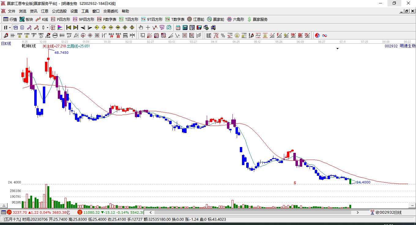 明德生物002932最高價(jià)挑戰(zhàn)藍(lán)色外軌線 小幅上漲3.31%
